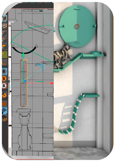 J’ai cherché sur la toile et j’ai vu de nombreux produits destinés aux petits félins. Arbres à chats, ou éléments de parcours.