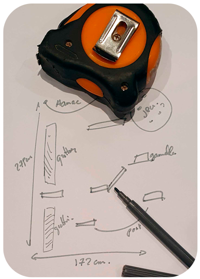En venant jusqu'à vous, je pourrai prendre les mesures et quelques photos de l'endroit où sera implanter votre MURACHAT. Je pourrai peut-être déjà faire une esquisse du projet imaginé.